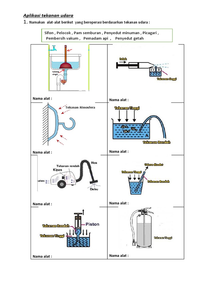 Ejercicio De Aplikasi Konsep Tekanan Udara Dalam Kehidupan Harian